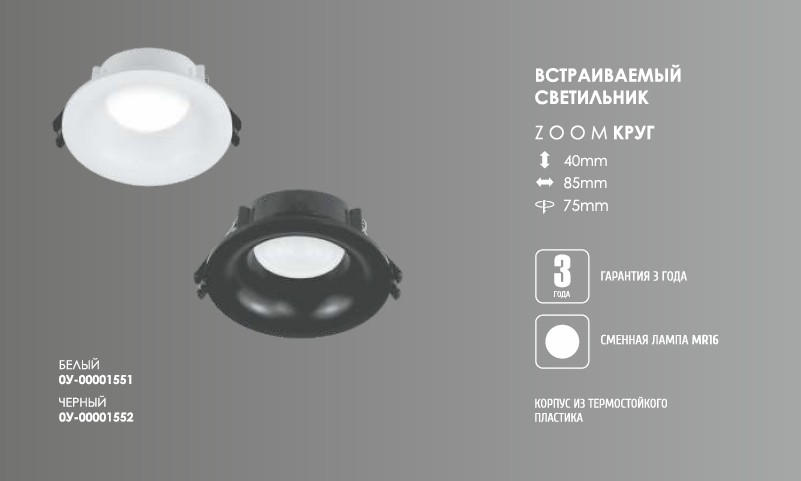Светильник ART ZOOM, Встраиваемый Круг Белый (под лампу MR16) 85х75х40мм.