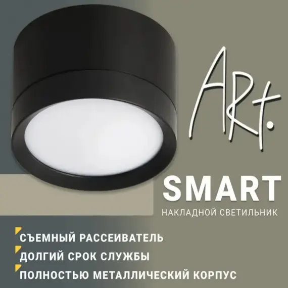 Накладной светильник ART SMART — отличное решение для декоративного и акцентного интерьерного освещения. Светильник поможет создать неповторимую атмосферу в Вашем доме и порадует долгим сроком службы, безопасной эксплуатацией и низким энергопотреблением.