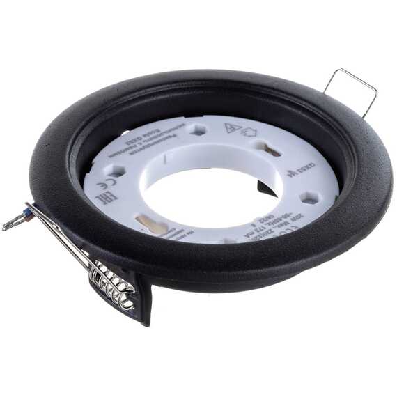 Встраиваемый потолочный светильник Ecola GX53 H4 без рефлектора. Черный матовый. Размер 38x106. Размер монтажного отверстия 90 мм. Пружинное крепление. Патрон GX53. Минимальная необходимая для монтажа высота межпотолочного пространства 38 мм. Защита от прожигов в натяжных и пластиковых потолках.
