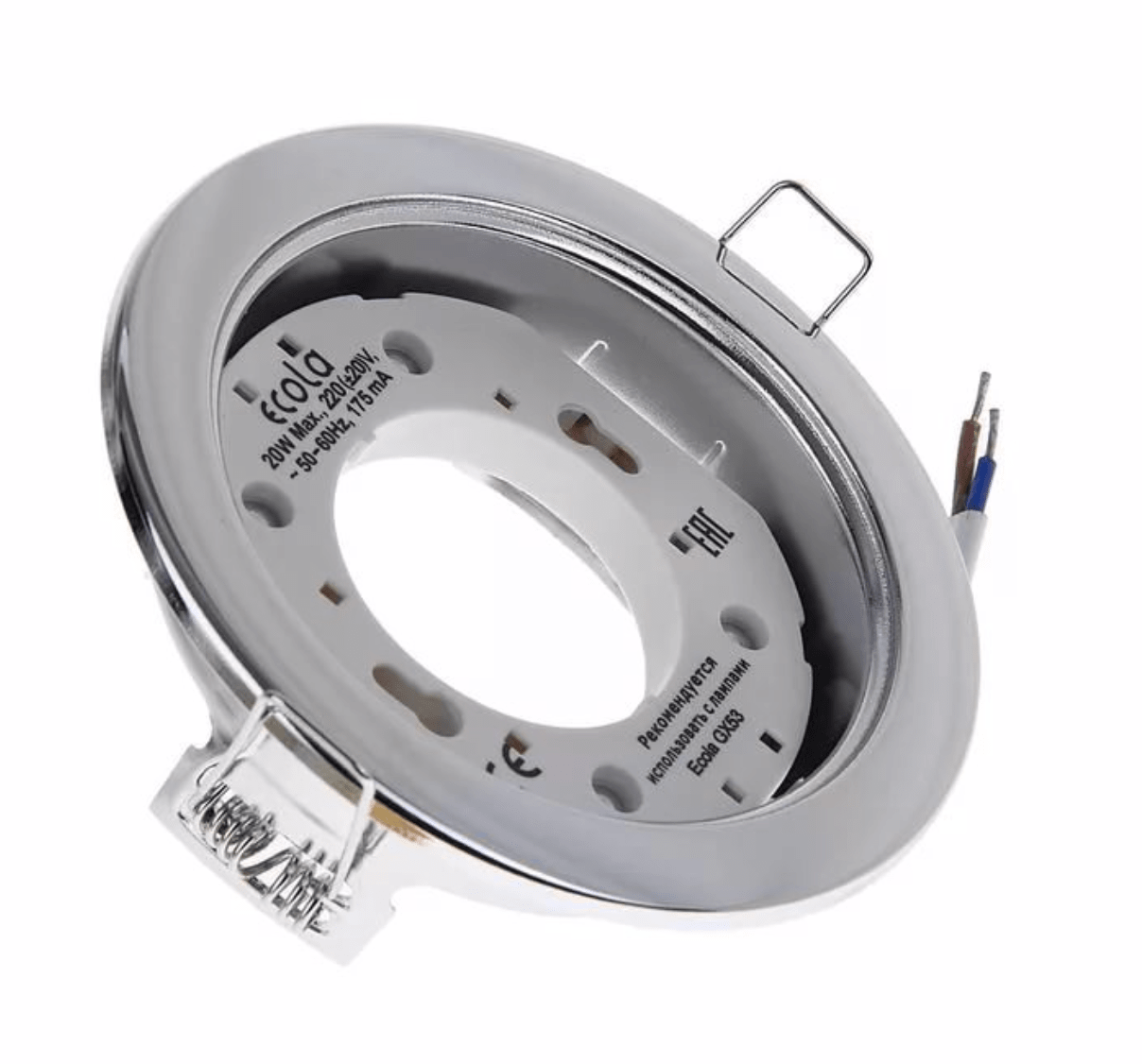 Световой поток этого светильника мягкий и рассеянный. Такой эффект достигается, благодаря отсутствию рефлектора. В комплект входит соединительная коробка и крепежные клеммы, а лампы GX53 нужно заказать на нашем сайте отдельно.
