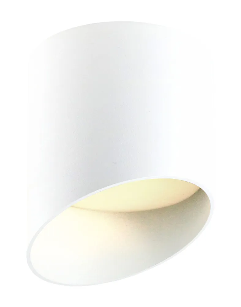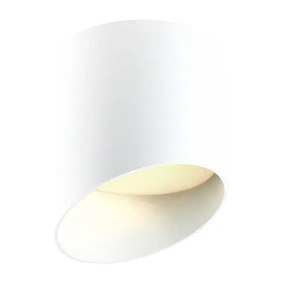 Стильный вид прибору придает оригинальное исполнение со скошенным краем и цилиндрическая форма. Точечный накладной светильник впишется в любой современный интерьер, благодаря своему лаконичному и минималистичному дизайну. Спот подходит для натяжного потолка и подвесных конструкций.