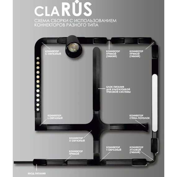CLARUS Коннектор Х-образный 48V для магнитного ультратонкого шинопровода, Чёрный