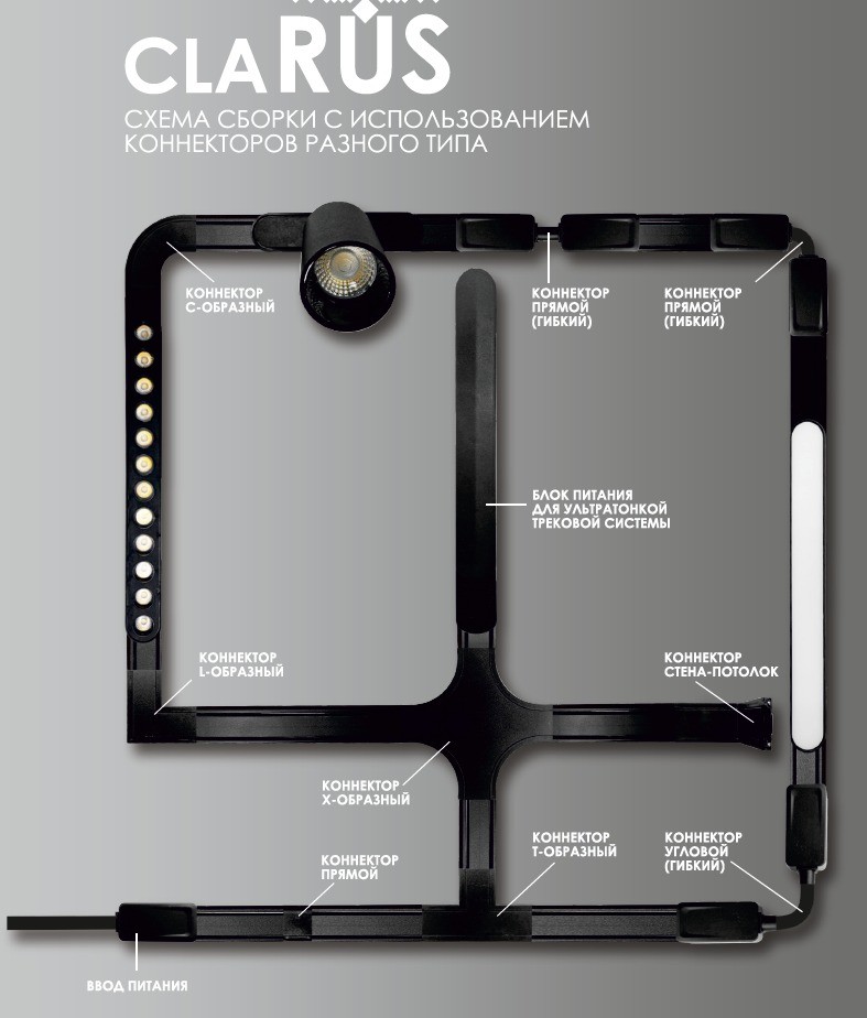 Ключевое отличие магнитных треков CLARUS — толщина всего 6 мм. Это позволяет создавать элегантные световые композиции и сценарии освещения. И что особенно важно, черненые контакты становятся невидимыми при установке на потолок/стену, обеспечивая чистый и стильный внешний вид.