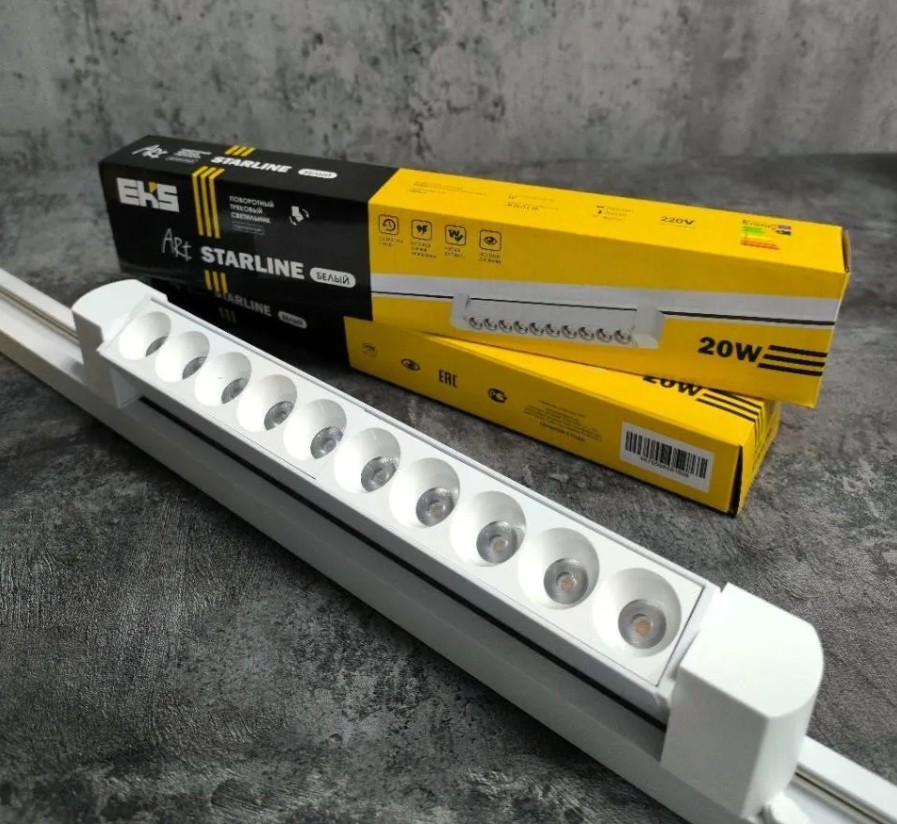Светильник трековый однофазный поворотный EKS Art Starline - элегантный и функциональный элемент освещения для современного интерьера. Изготовлен из качественных материалов, белый светильник имеет стильный дизайн, который прекрасно впишется в любое помещение. EKS Art Starline обладает возможностью регулировки направления света, что позволяет создавать разнообразные световые эффекты и адаптировать освещение под различные потребности. Благодаря светодиодной технологии, светильник энергоэффективен и обеспечивает яркое и комфортное освещение. Установка этого светильника на трековую систему позволяет легко изменять его расположение в пространстве, обеспечивая гибкость и удобство использования. Светильник EKS Art Starline станет не только источником света, но и стильным акцентом в вашем интерьере.