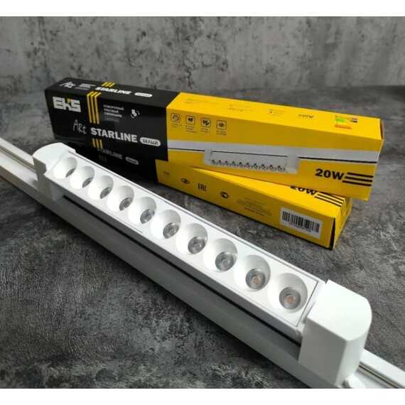 Светильник ART STARLINE, 20W, 4000K. Белый. Трековый поворотный однофазный (335х34х46мм.)