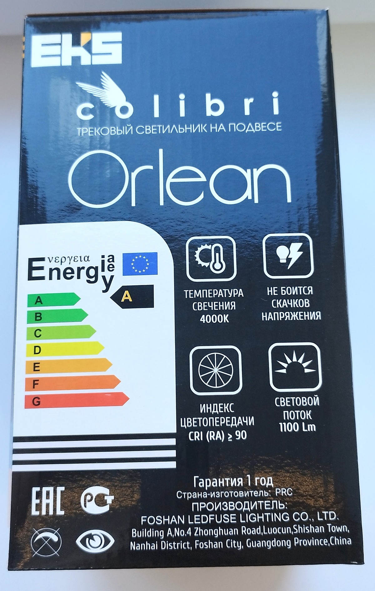 Светильник для трековой системы COLIBRI, ORLEAN, Чёрный, на подвесе, 12W, 4000К, 900Lm, 220х110х1200