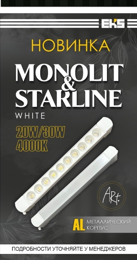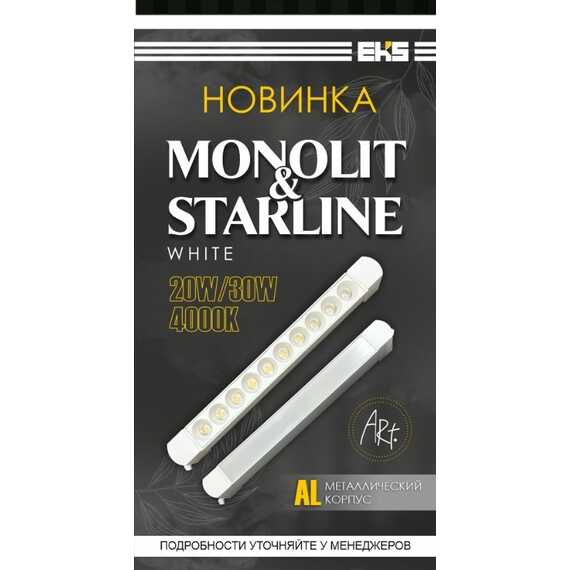 Трековый поворотный светильник ART MONOLIT в белом цвете 20 Вт, 4000K, 1800ЛМ (БЕЛЫЙ) от компании EKS для однофазных трековых систем.