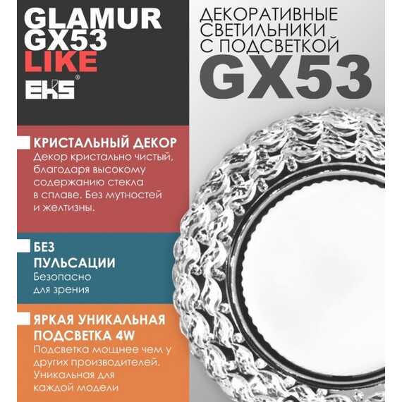 Декоративный светильник GLAMUR LIKE GX53L1, 4200К может использоваться для основного, декоративного и акцентного освещения. Для внутреннего освещения.