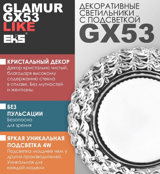 GLAMUR LIKE GX53L5 — точечный светильник со светодиодной подсветкой.