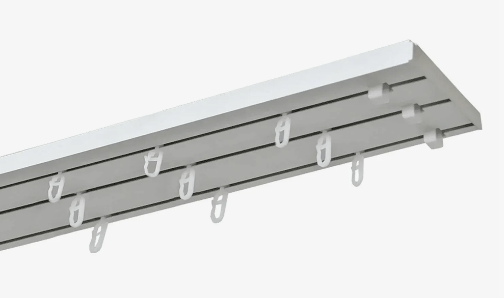 Трехрядная потолочная шина в комплекте с крючками, стопорами и креплениями для потолка длиной 2,8 метра.