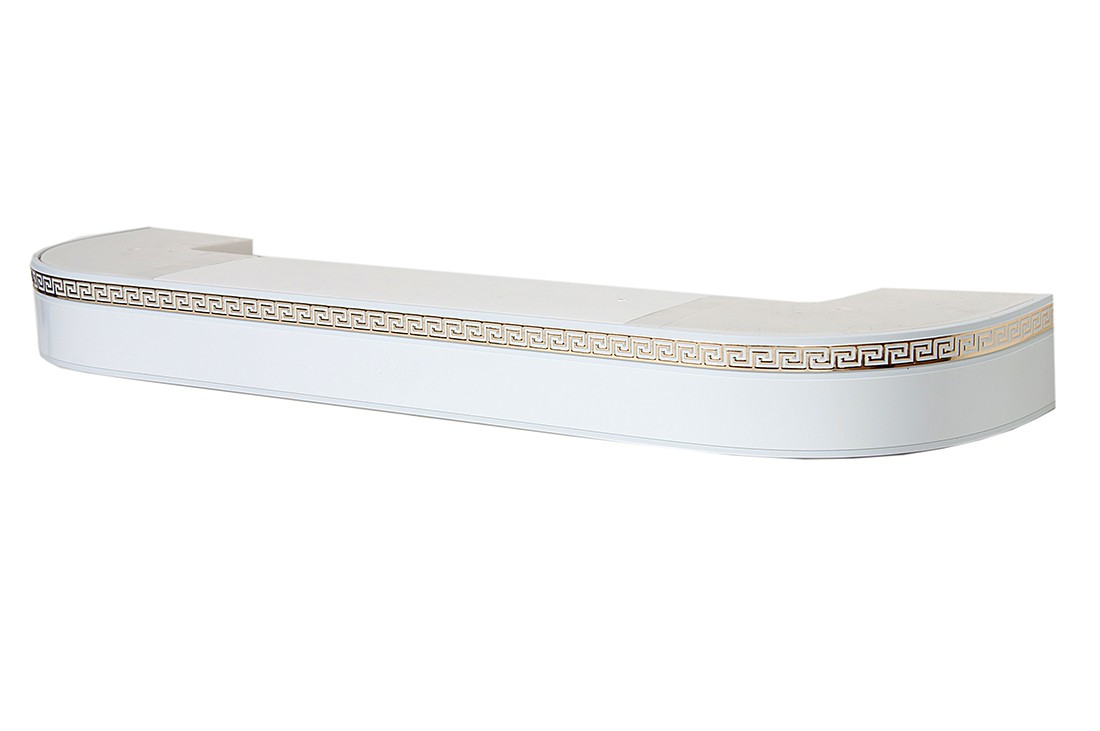 Фасадная планка Magellan Классик бленда ПВХ 5 см, 4 м белого цвета с золотым, "греческим" меандром представляет собой декоративную накладку на карниз.