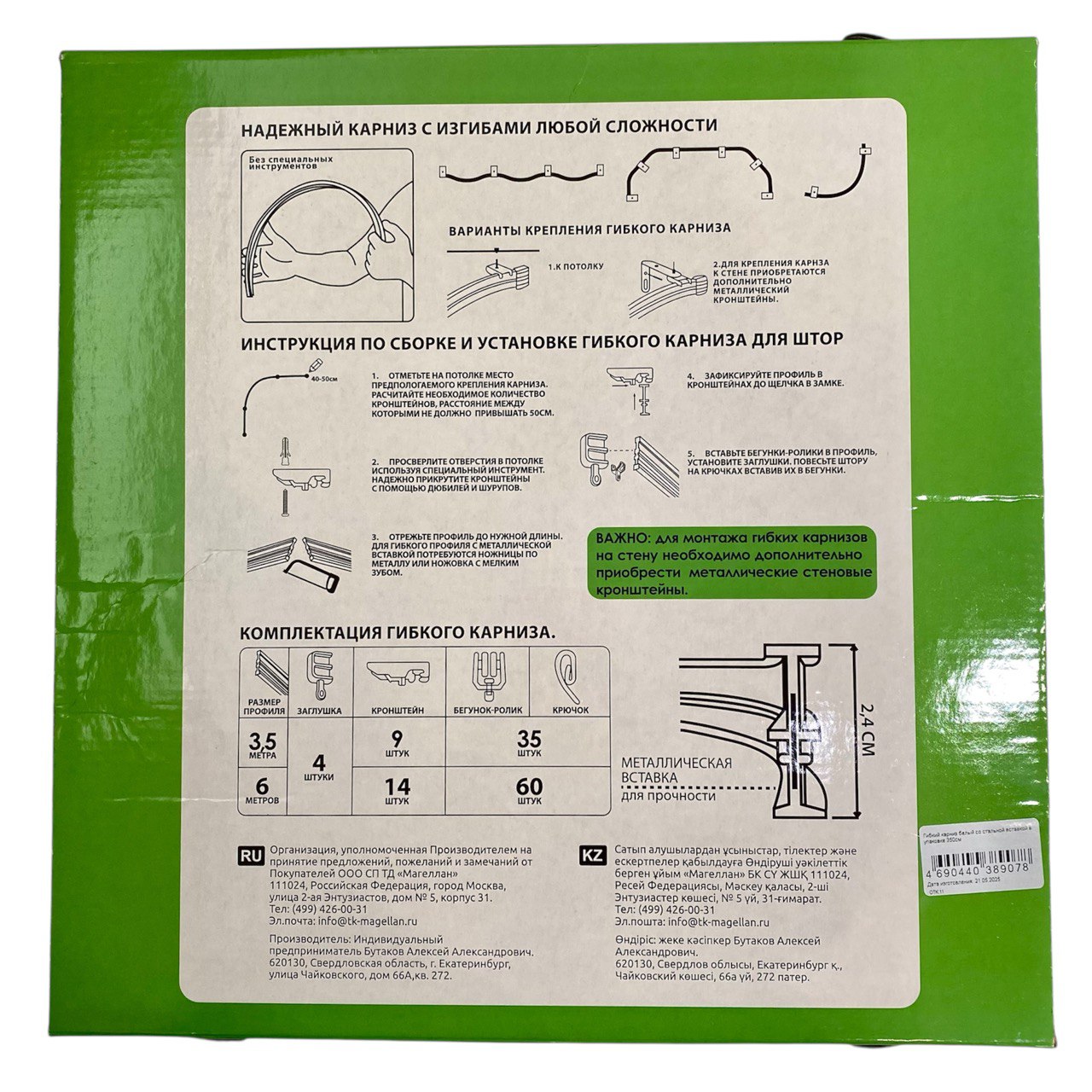 Карниз однорядный Гибкий от Magellan - это идеальное решение для тех, кто хочет создать уютную атмосферу в своем доме. Этот карниз имеет длину 600 сантиметров и выполнен из высококачественного пластика белого цвета. Он гибкий, что позволяет повесить шторы в любой сложной форме и может быть установлен на потолке.