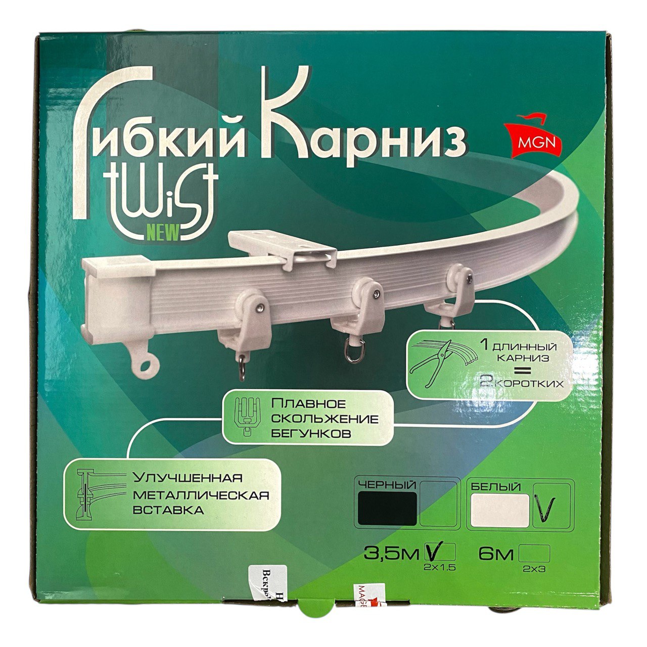 (МГК2) Гибкий карниз БЕЛЫЙ со стальной вставкой 600 см