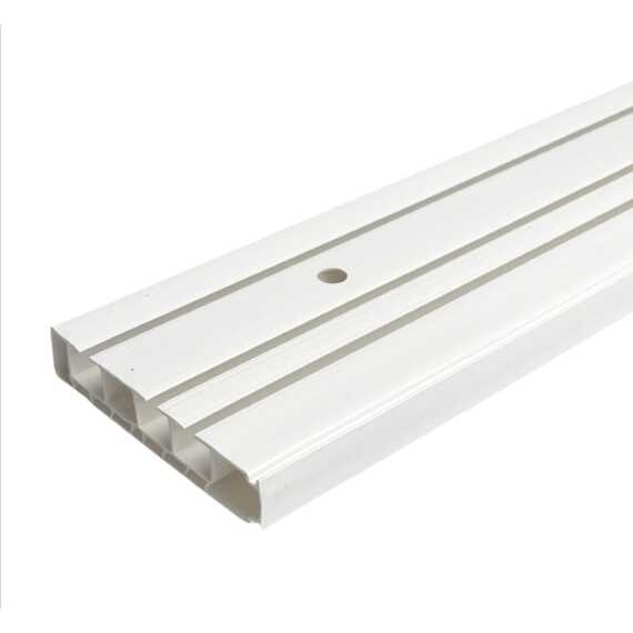 Карниз крепится к потолку, занимает совсем немного места и позволяет визуально вытянуть помещение, так как высота штор создает строгие вертикали в интерьере. На карниз можно подобрать декоративную бленду (экран), подходящий под стиль вашего интерьера. Карниз выполнен из белого ПВХ.