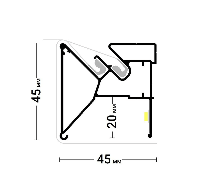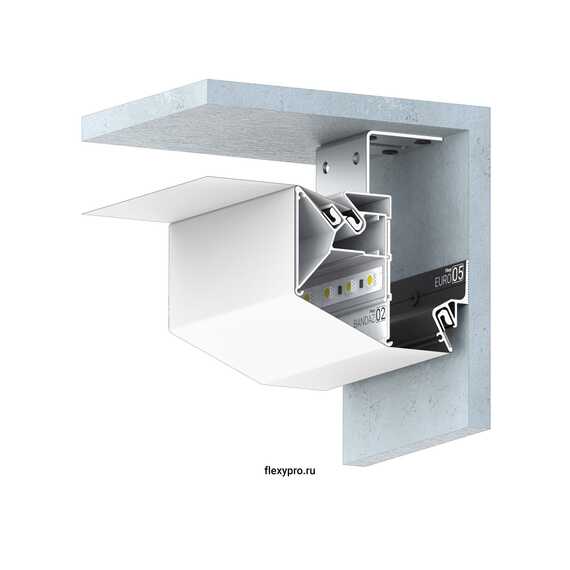 НАПИЛЕННЫЙ профиль Flexy FUSION 02 для криволинейных многоуровневых натяжных потолков с гарпунной системой крепления полотна. С бесщелевым примыканием полотен. С полкой для светодиодной ленты.