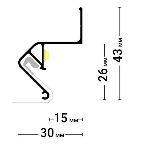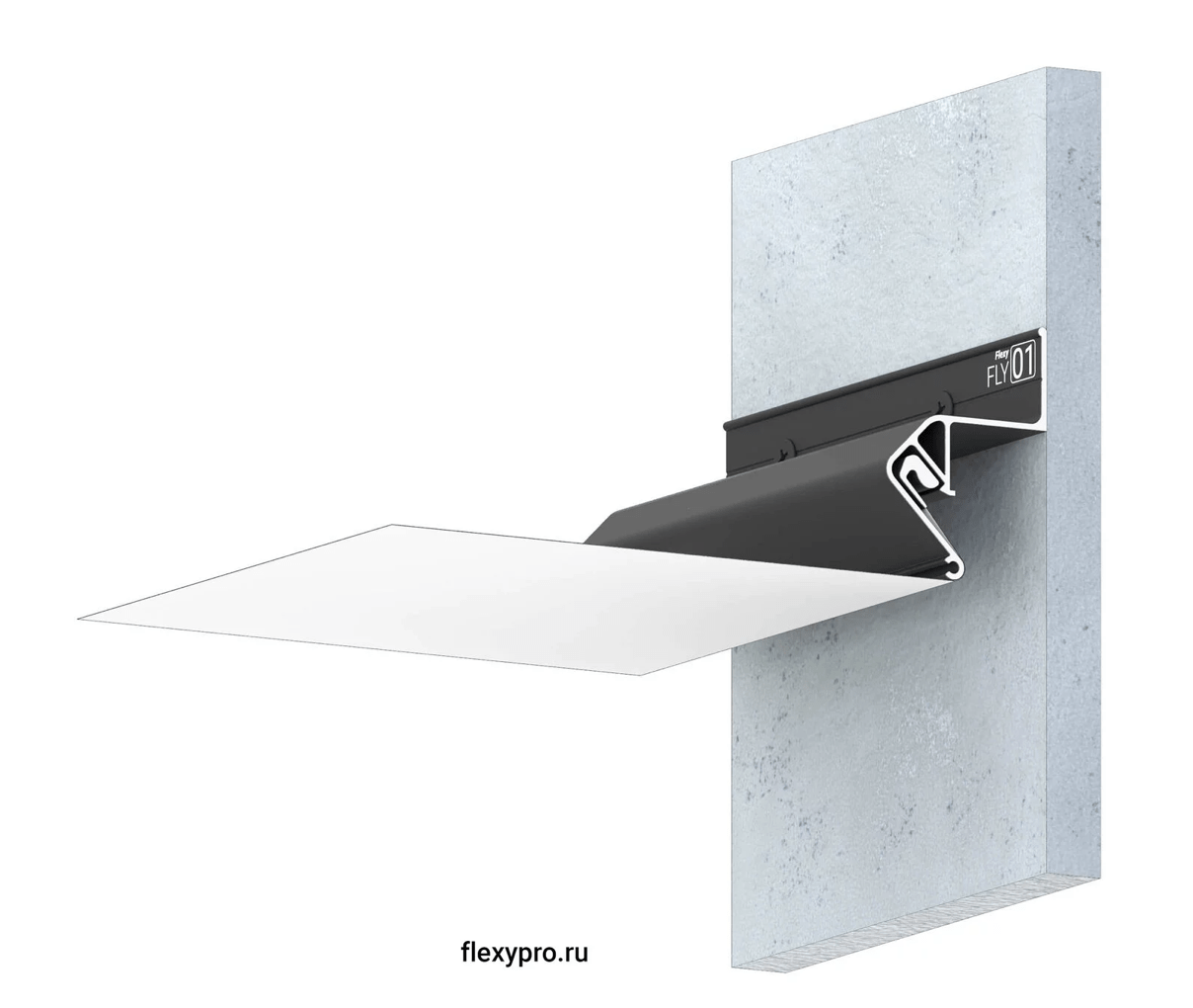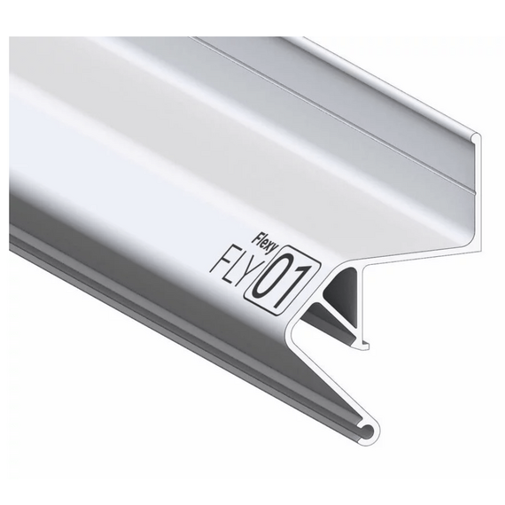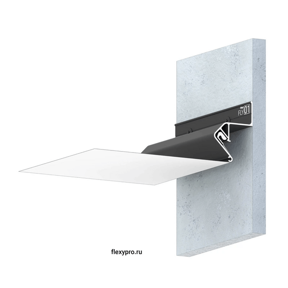 Стеновой парящий профиль Flexy FLY 01 для натяжных потолков с гарпунной системой крепления полотна. С полкой для светодиодной ленты. Без светорассеивающей вставки.