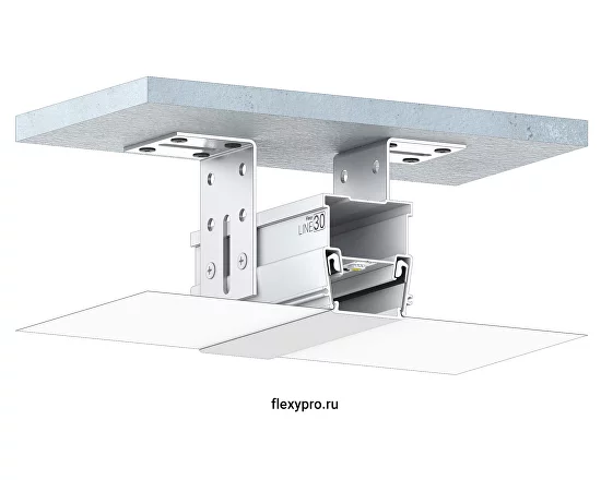 Разделительный профиль Flexy LINE 30 для натяжных потолков с гарпунной системой крепления полотна. Для изготовления световых линий.