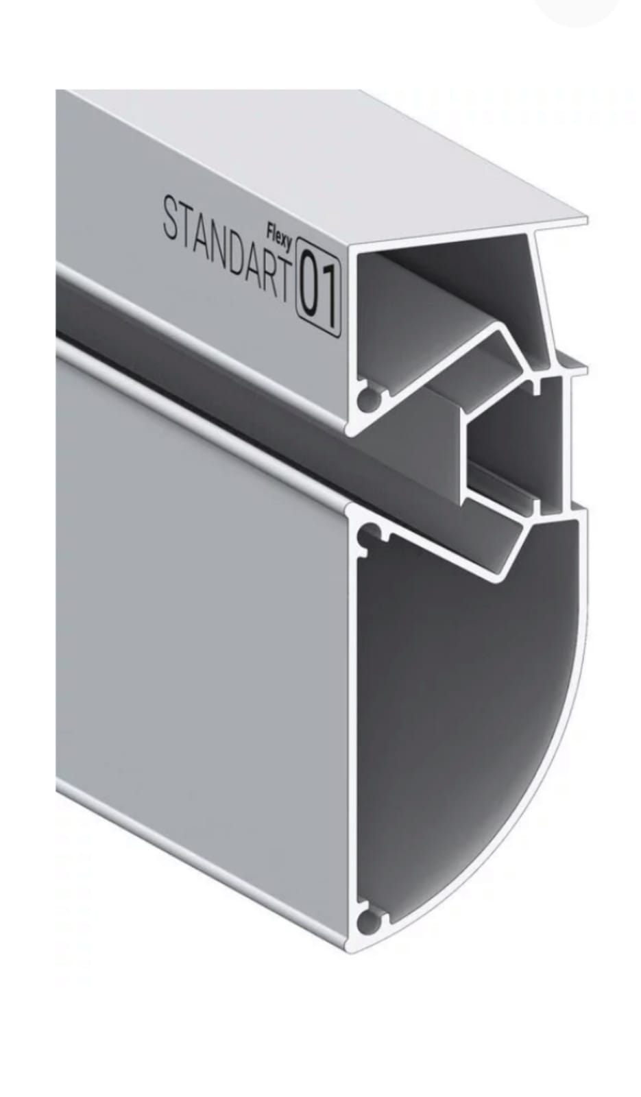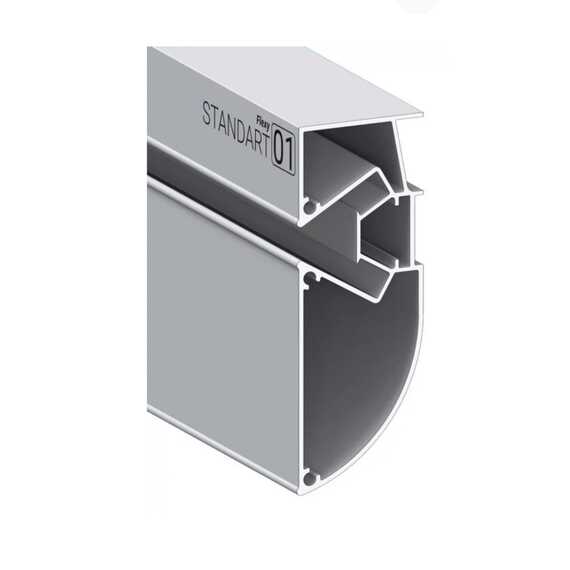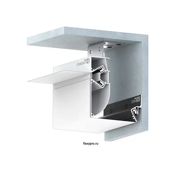 Напиленный профиль Flexy STANDART 01 для создания конструкций для многоуровневых натяжных потолков с гарпунной системой крепления полотна. С разделительной вставкой. Без подсветки.