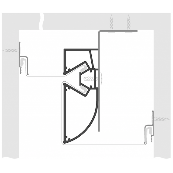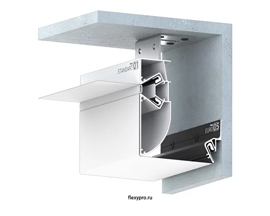Профиль Flexy STANDART 01 для многоуровневых натяжных потолков с гарпунной системой крепления полотна. С разделительной вставкой. Без подсветки.