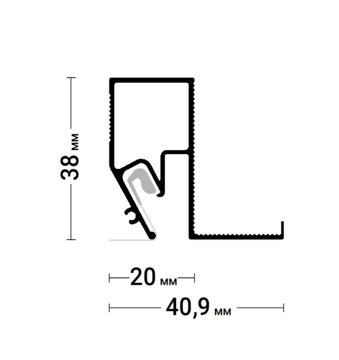 Теневой профиль Flexy BRUS 06 для натяжных потолков с гарпунной системой крепления полотна. Для обхода лестничных проемов и мансардных окон.
