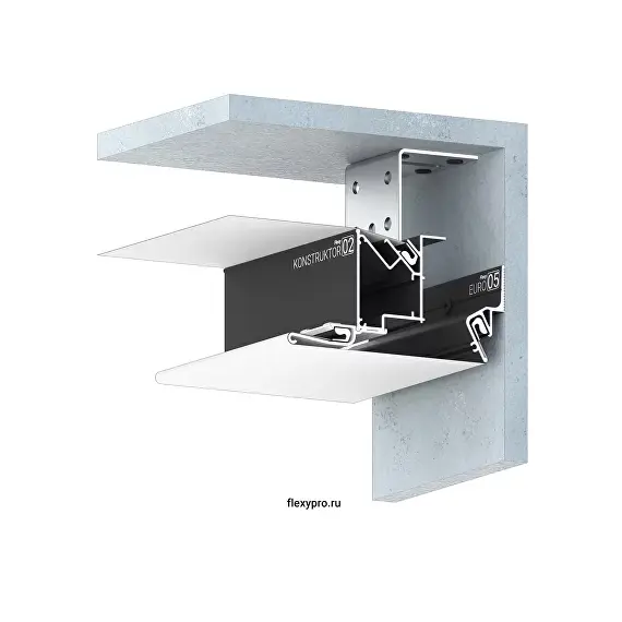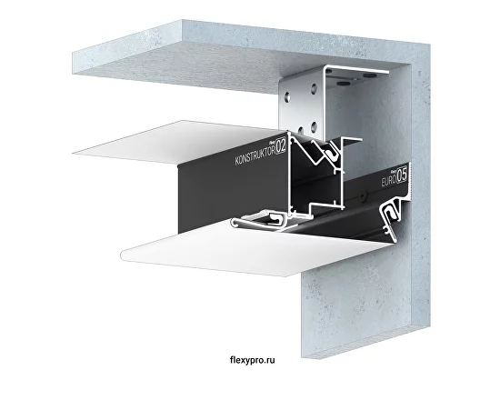 Стеновой профиль Flexy EURO 02 с теневым зазором для натяжных потолков с гарпунной системой крепления полотна.