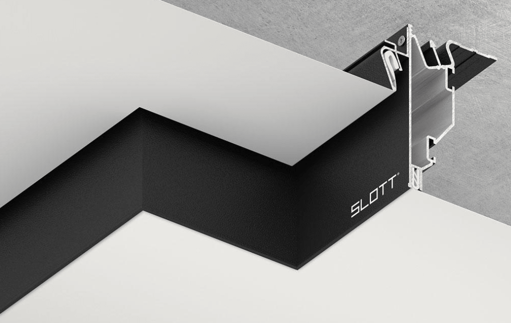 - Идеальное исполнение углов. Применяя теневые профили EuroKraab можно получить как острый, ровный угол в 90 градусов, так и гладкий, срезанный без складок, линз.