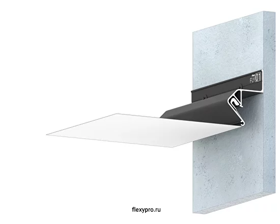 Черный стеновой парящий профиль Flexy FLY 01 для натяжных потолков с гарпунной системой крепления полотна. С полкой для светодиодной ленты. Без светорассеивающей вставки.