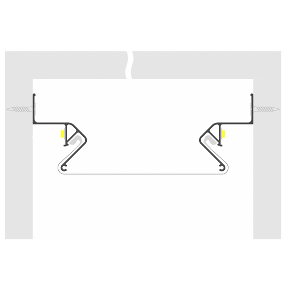 - Крепление Саморезами или дюбелями к стене. Шаг крепления не более 300 мм. Не рекомендуется в помещениях с глянцевыми и зеркальными стенами.