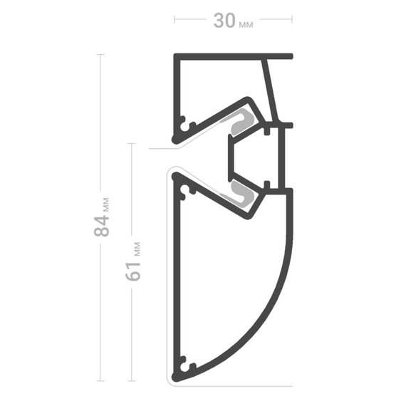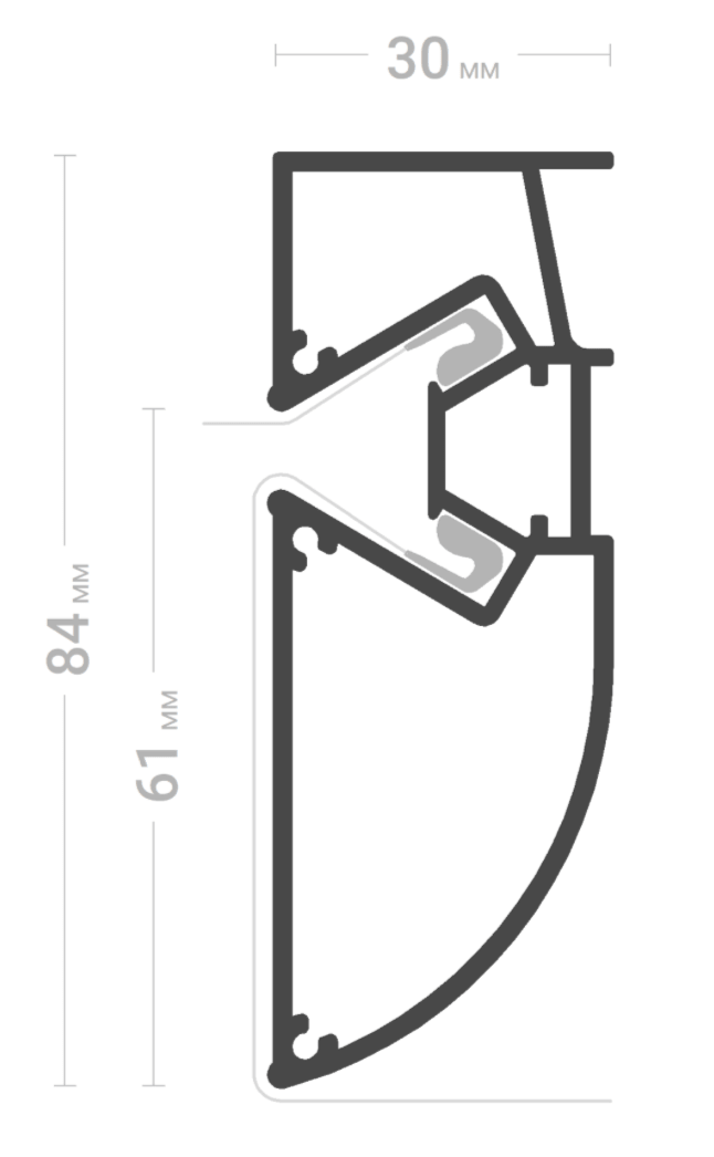 - Простота установки - профиль напиленный, поэтому легко монтируется и адаптируется под конкретные размеры и формы. Минимальный радиус скругления углов 15 см. Высота ступени 6 см.