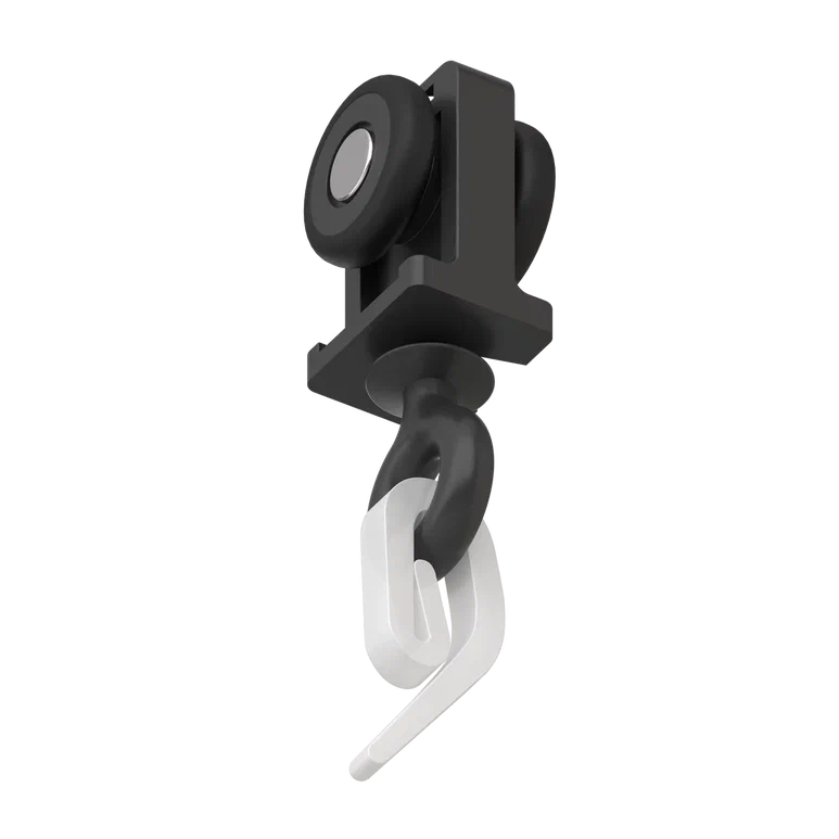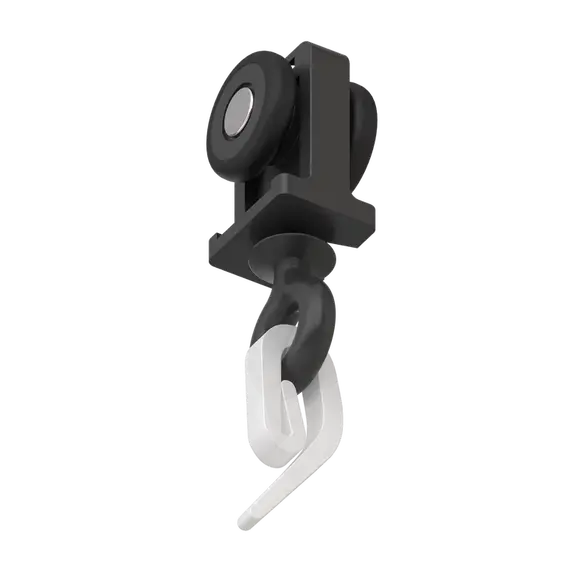 Бегунок Kraab Slott Parsek, чёрный - компонент системы встроенного карниза Slott-Parsek. Бегунок с поворотным кольцом, с прорезиненными роликом обеспечивает бесшумный ход системы. Поставляется в чёрном цвете. Рекомендовано использовать из расчёта 10 шт на 1 метр (один ряд карниза).