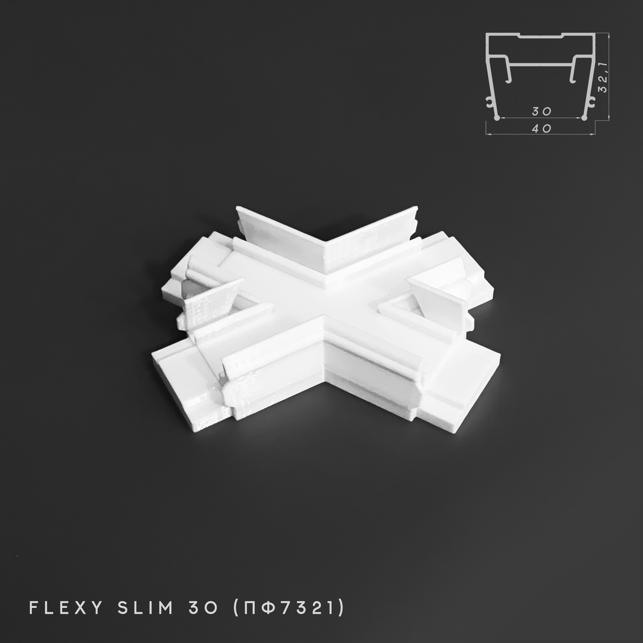 Соединитель СТ0002 Flexy Slim 30мм Крестовина X-образная 120/60° (ПФ7321)