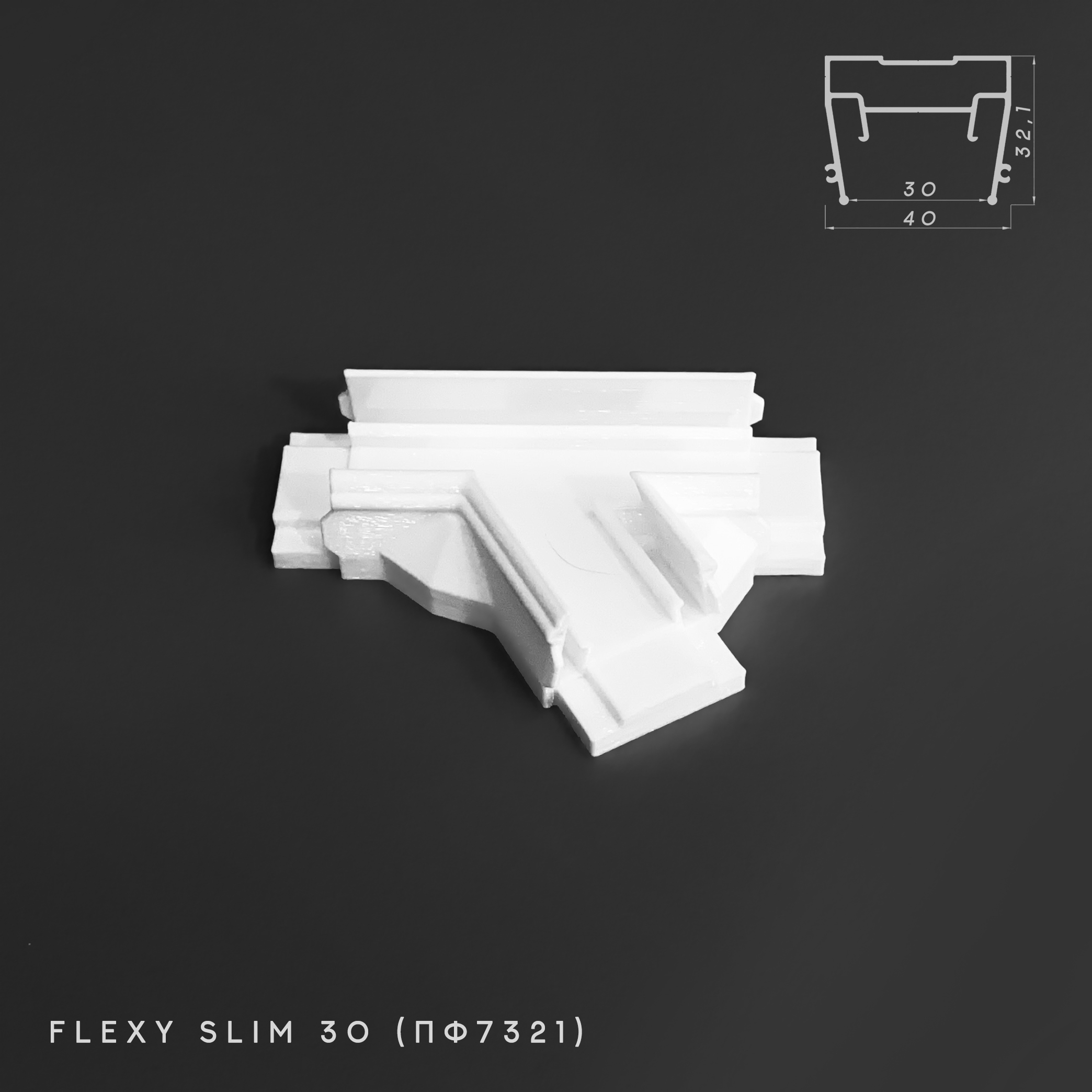 Соединитель СТ0008 Flexy Slim 30мм Перекресток Т-образный 120/60° правый (ПФ7321)