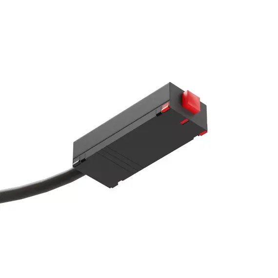 Выполнен из чёрного пластика с токопроводящими медными контактами и после установки в трек абсолютно незаметен.