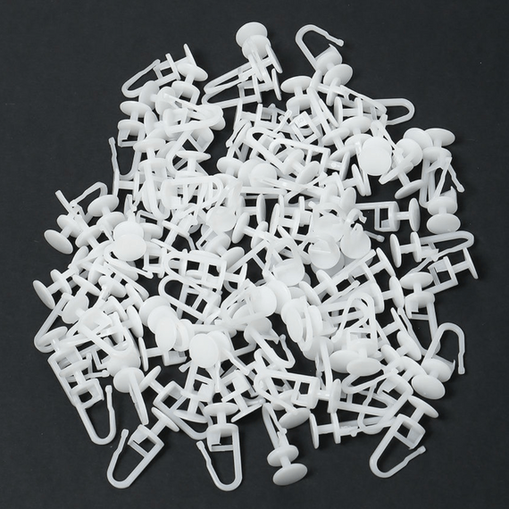 Предназначен для крепления штор и занавесок. Отличное скольжение в направляющей. Замочный механизм надёжно фиксирует штору. В наборе 100 шт. Шторы для стирки можно снимать с крючками.