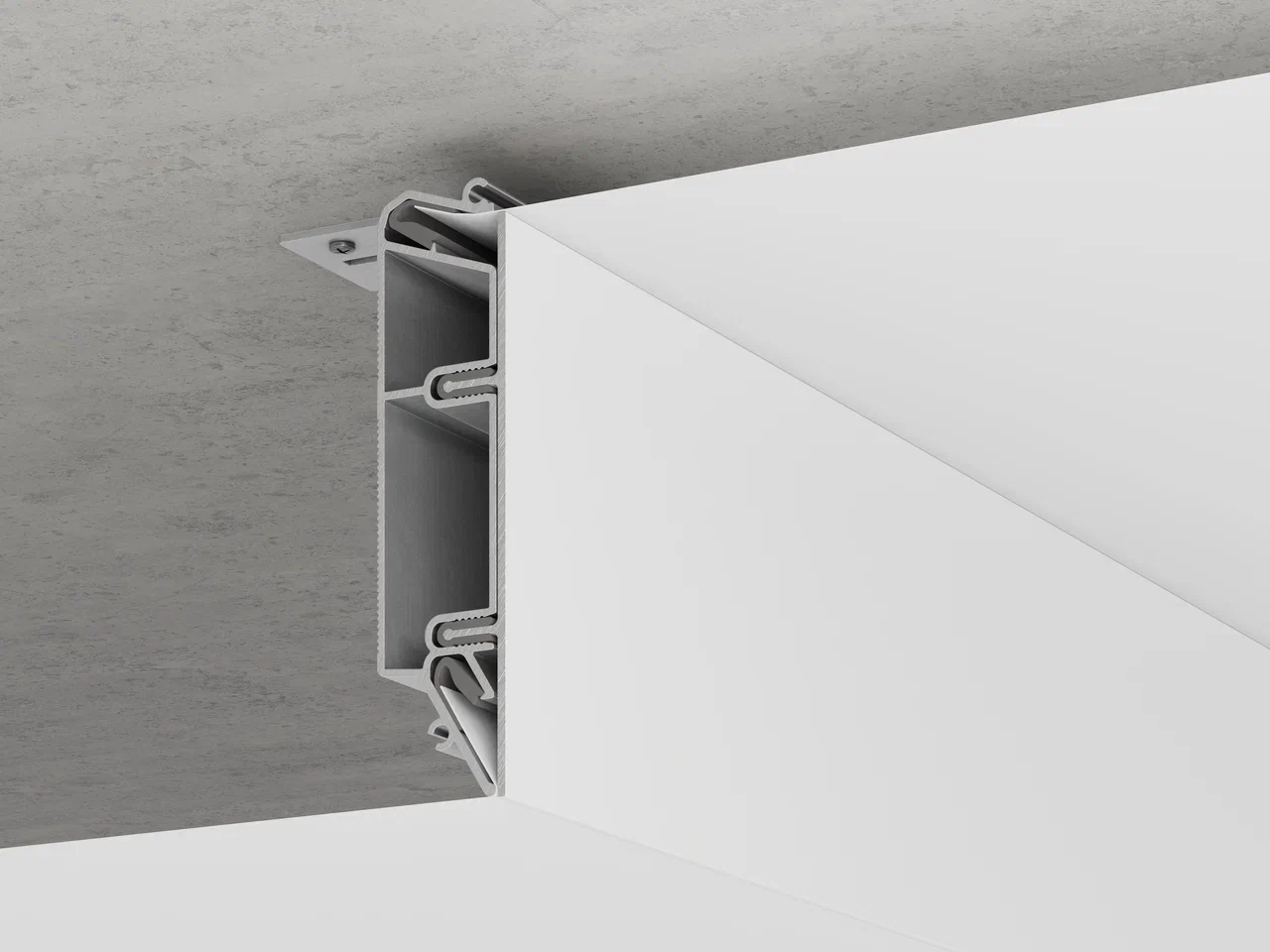 - легко устанавливается в профиль и надежно фиксируется с помощью специального демпфера, исключая случайное выпадение, и в случае необходимости его можно легко демонтировать для проведения ремонта или замены полотна;
