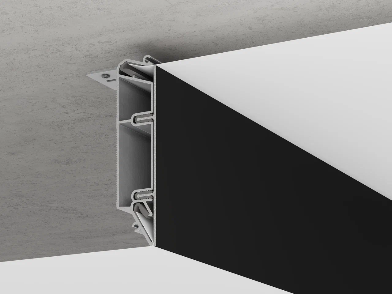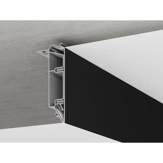 - легко устанавливается в профиль и надежно фиксируется с помощью специального демпфера, исключая случайное выпадение, и в случае необходимости его можно легко демонтировать для проведения ремонта или замены полотна;