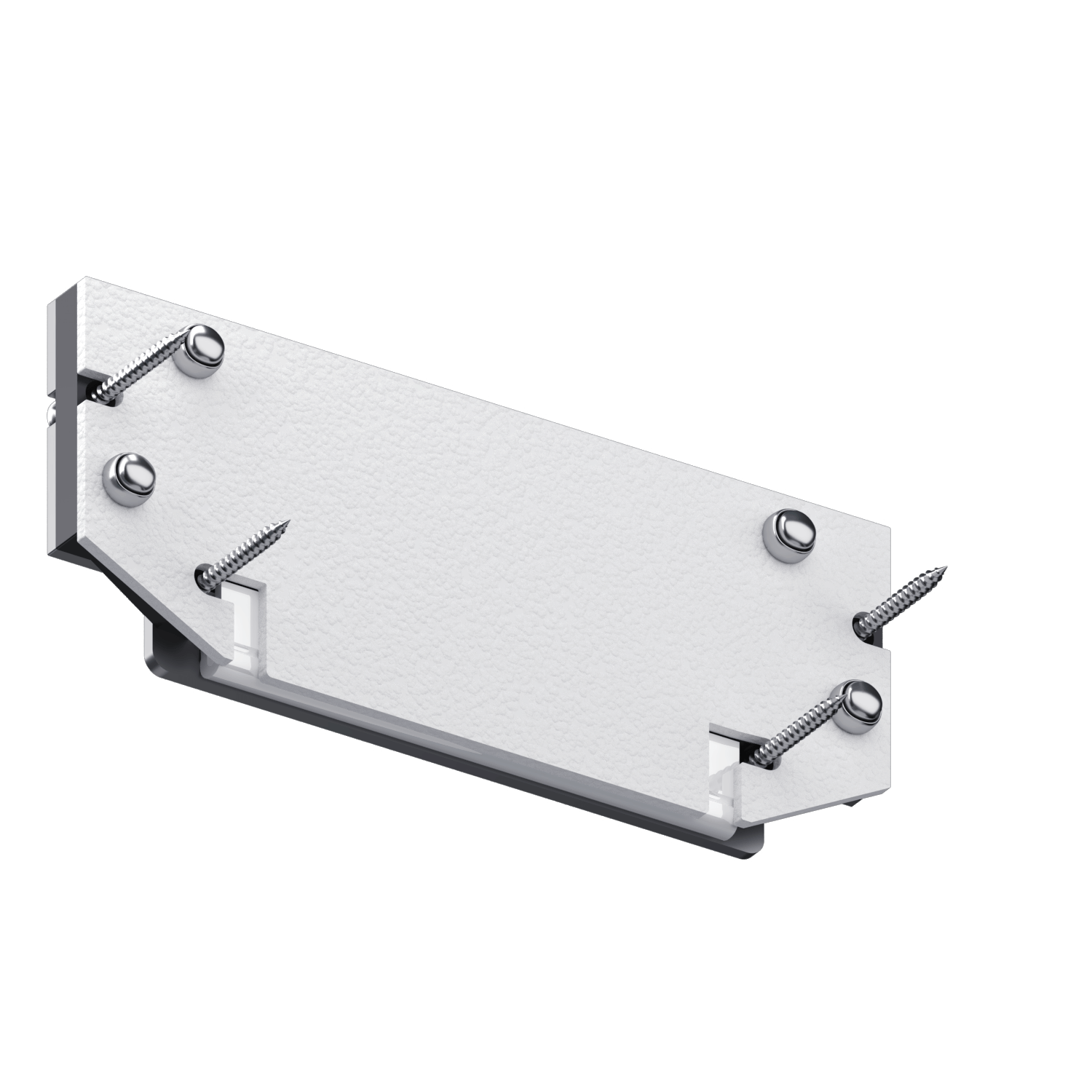 Торцевая заглушка представляет собой две стальные пластины с прослойкой из полимерного материала. Одна из сторон соответствует одному из цветовых решений нишевых линий: чёрно-белая, белая, чёрная. Поставляется отдельно от трековой линии и выступает в роли опционального узла всей системы Slott. Комплектуется четырьмя саморезами.