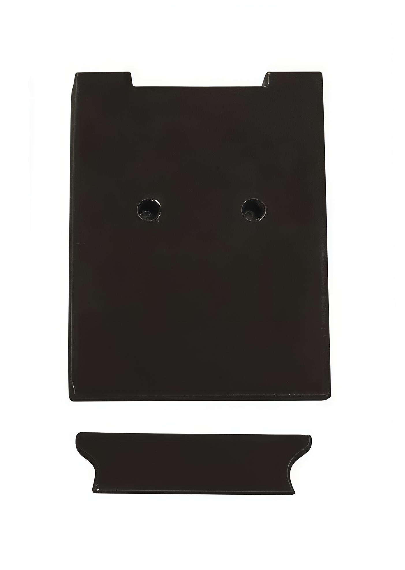 Комплект торцевых заглушек с гвоздиками для профиля КП-04 чёрного цвета (внешняя заглушка – 2 шт., внутренняя заглушка на 3М скотче – 2 шт., гвоздики – 4 шт.), материал заглушек: полистирол чёрного цвета.