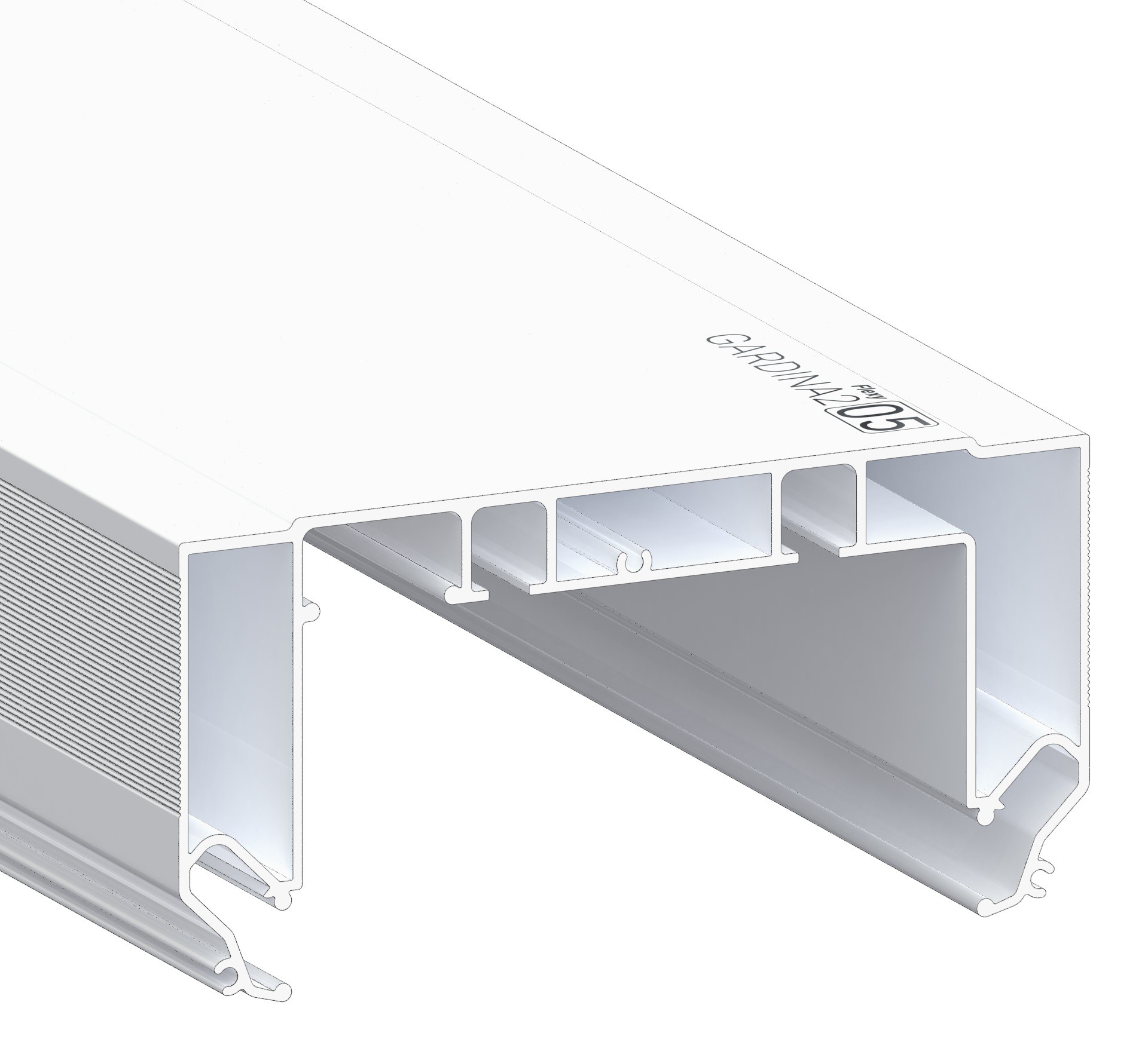 Профиль Flexy GARDINA2 05 для изготовления скрытых п-образных карнизных ниш с двумя пазами для установки штор и гардин. С подсветкой. Для гарпунной системы крепления полотна. Профиль монтируется на стену, образуя скрытую нишу для установки карниза, что позволяет создать эффект невидимой крепежной системы , а также имеет различные размеры, что позволяет создавать карнизные ниши для штор и гардин разных длин и типов.