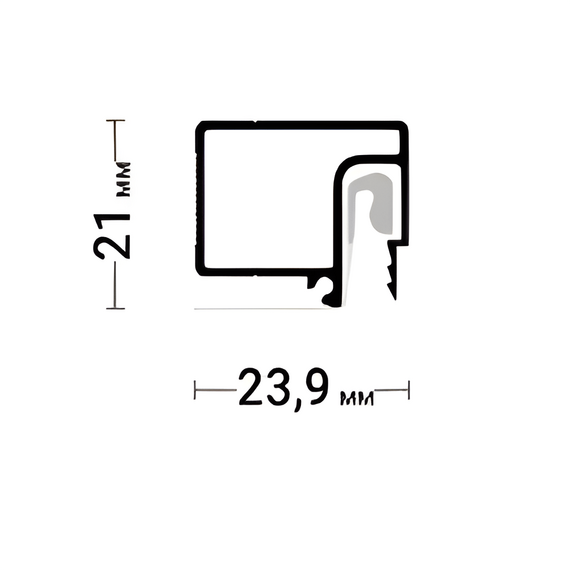 Профиль Flexy BRUS 05 для натяжных потолков с гарпунной системой крепления полотна. Для обхода сложных стен. По периметру профиль закрывается стеновой вставкой.