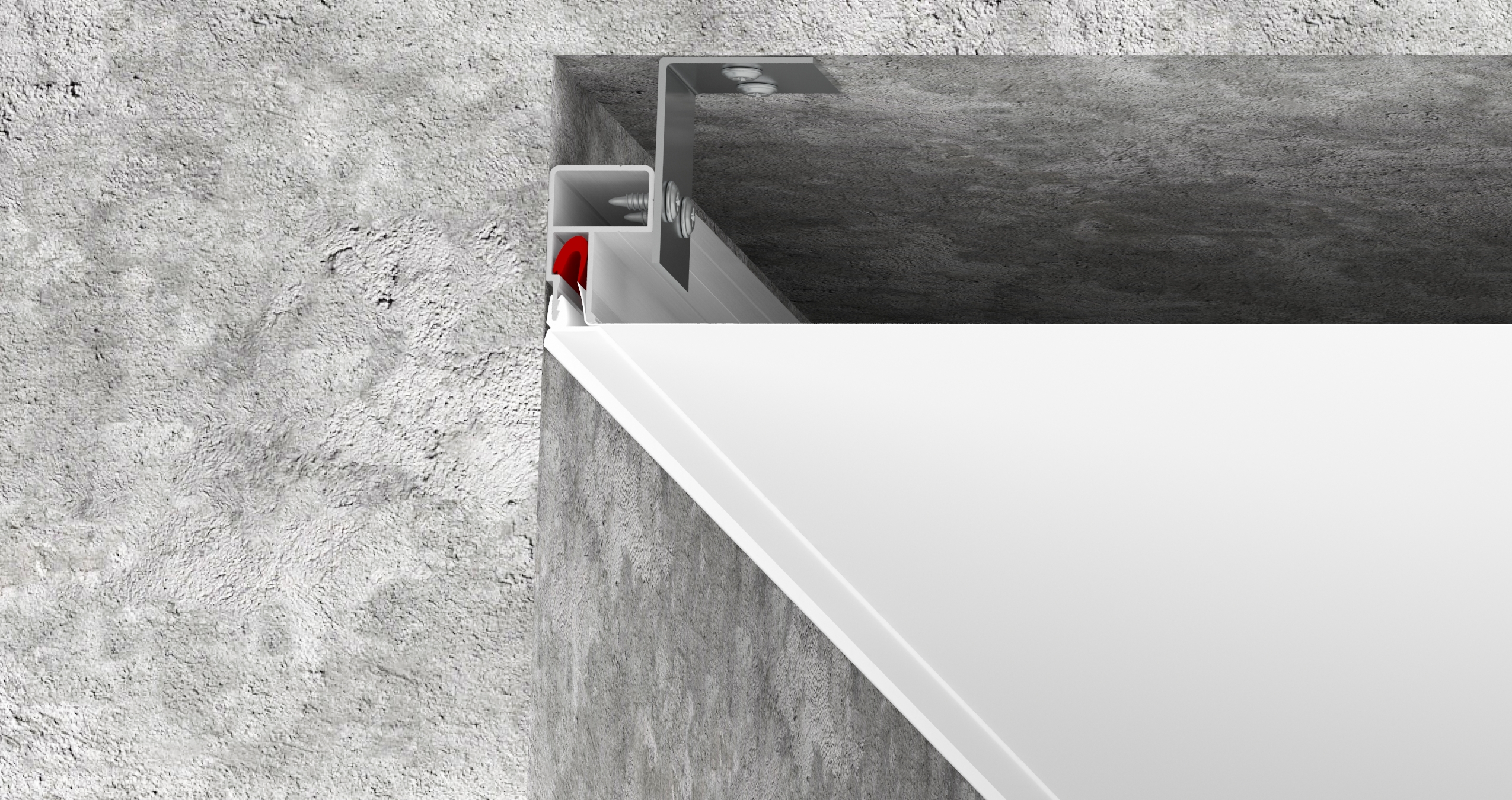 BU (Брус универсальный)- используется для крепления натяжного потолка в тех местах, где крепление профиля к стене не рекомендуется или не возможно, таких как: стекло, зеркало, плитка керамогранитная, направляющая планка для дверей шкафа купе. Примыкание к стенам осуществляется с использованием технической вставки.