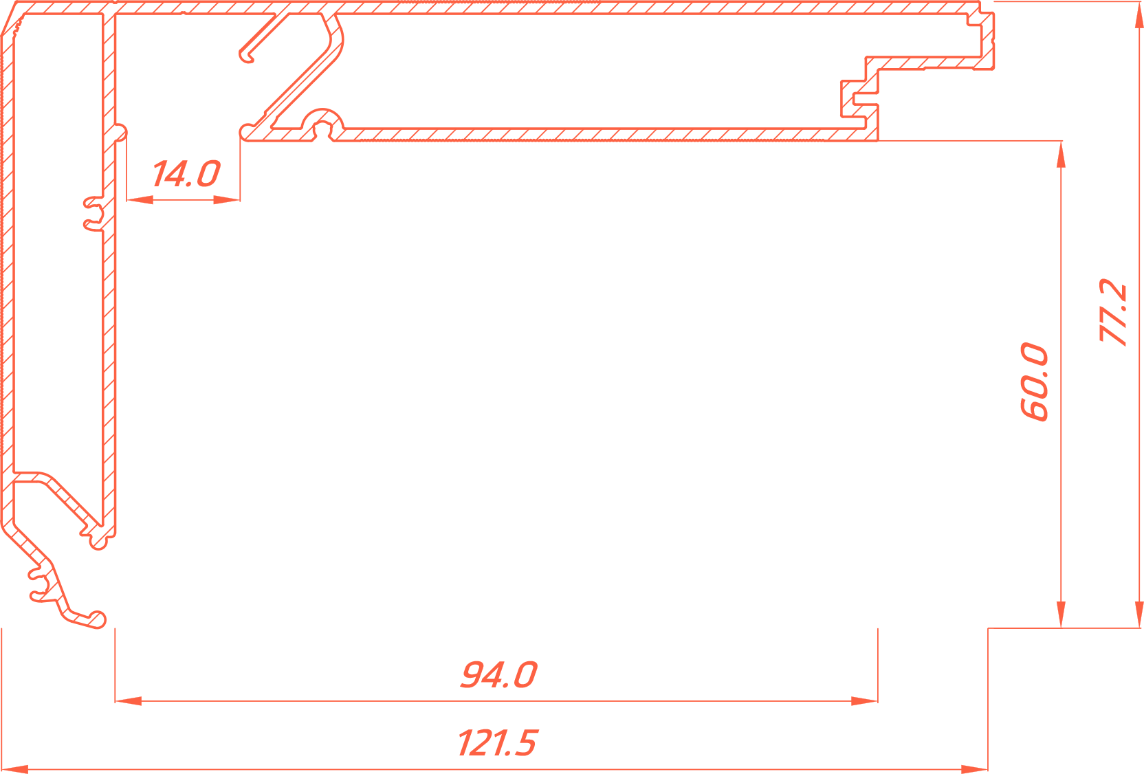 Профиль Flexy STANDART02 60 LED для изготовления прямых и угловых ниш для штор с подсветкой с последующей установкой накладных карнизов. Для гарпунной системы крепления полотна.