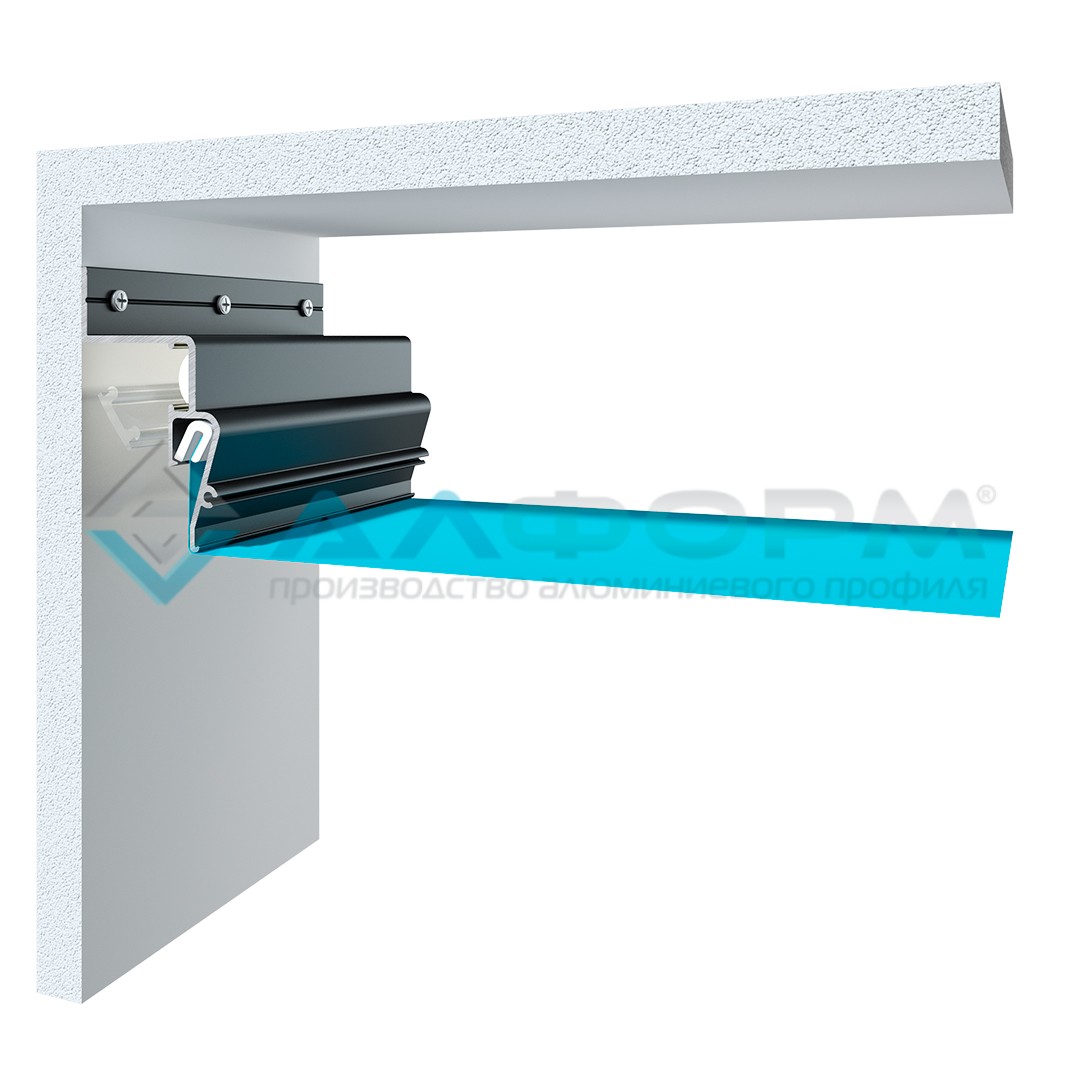 Алюминиевый профиль для контурной подсветки по технологии «Парящий потолок» для глянцевых стен.