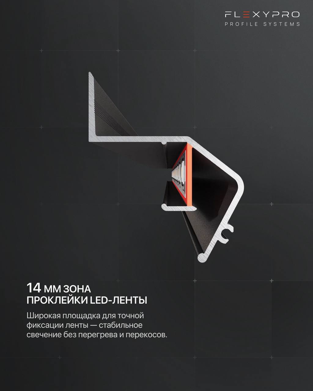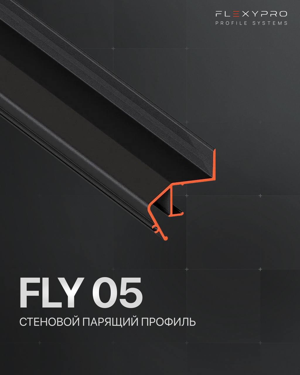 Профиль алюминиевый ПФ-3672 2м RAL9005 FLY05 ЧЕРНЫЙ ПАРЯЩИЙ С БОКОВОЙ ПОДСВЕТКОЙ