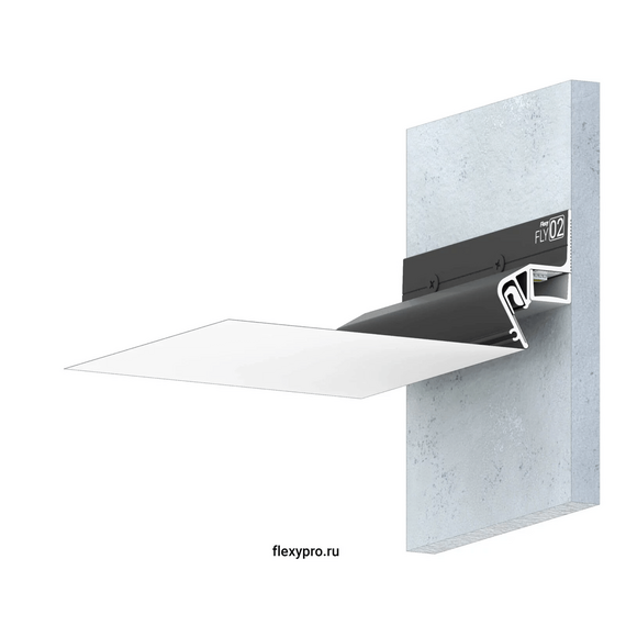 Стеновой парящий профиль Flexy FLY 02 для натяжных потолков с гарпунной системой крепления полотна. С полкой для светодиодной ленты и креплением для светорассеивающей вставки.