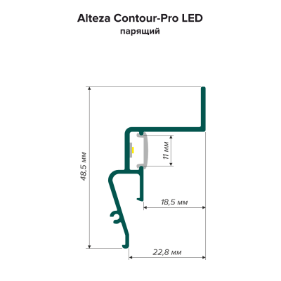 Профиль парящий ALTEZA Contour Pro LED черного цвета предназначен для создания эффекта «парящего потолка». Его рабочая длина — 2 метра.