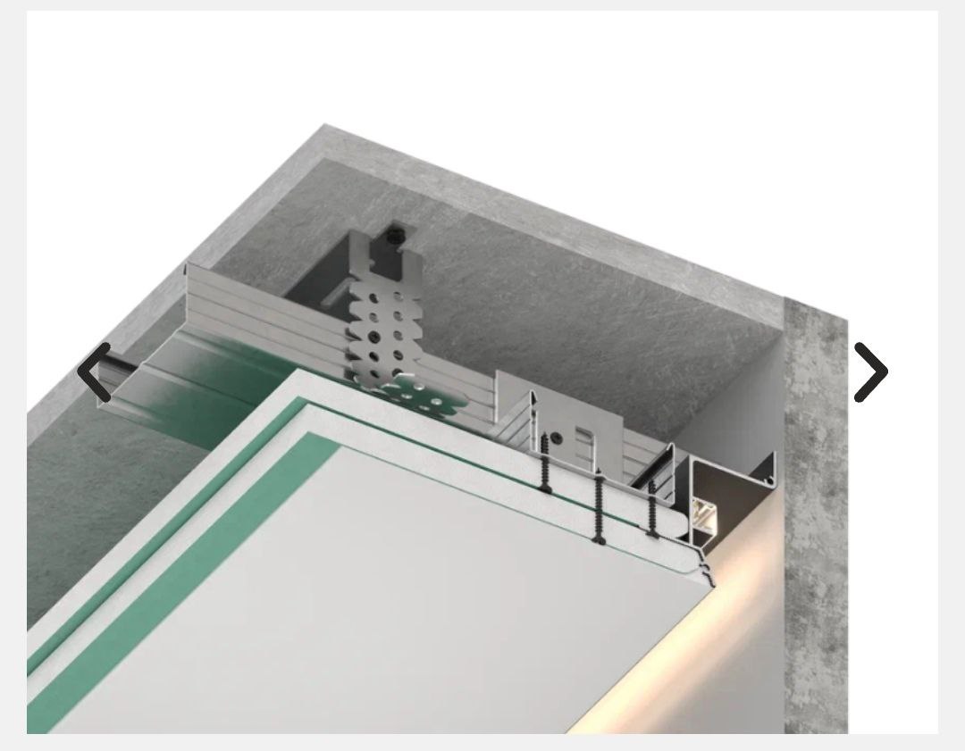 Профиль используется для создания эффекта “парящего в воздухе” потолка из гипсокартона, потолок крепится с отступом от стен. Место крепления конструкции незаметно, по всему периметру потолок подсвечивается мягким свет.