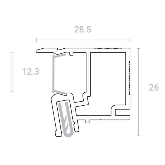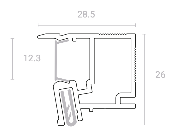 SLIM Villar – решение для декоративной подсветки стен. Профиль размером 27 мм разработан с целью минимизации потери высоты финишного потолка. Система комплектуется специальным поликарбонатным рассеивателем и демпфером, которые позволяют монтировать как ПВХ, так и тканевые полотна.