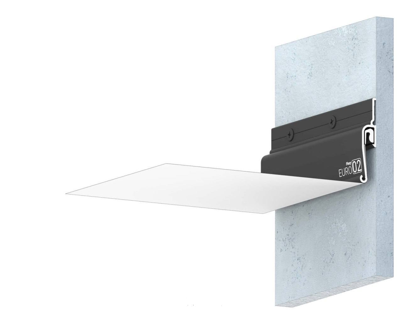 Стеновой профиль Flexy EURO 02 с теневым зазором для натяжных потолков с гарпунной системой крепления полотна.
