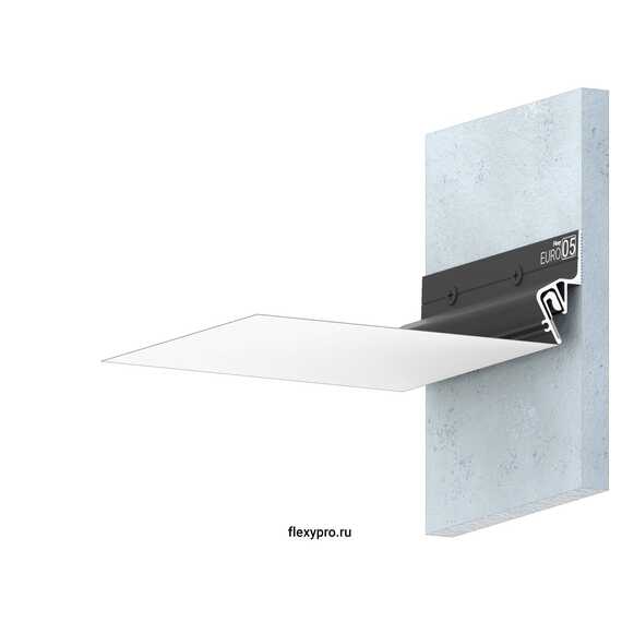 Стеновой профиль Flexy EURO 05 с теневым зазором для натяжных потолков с гарпунной системой крепления полотна.